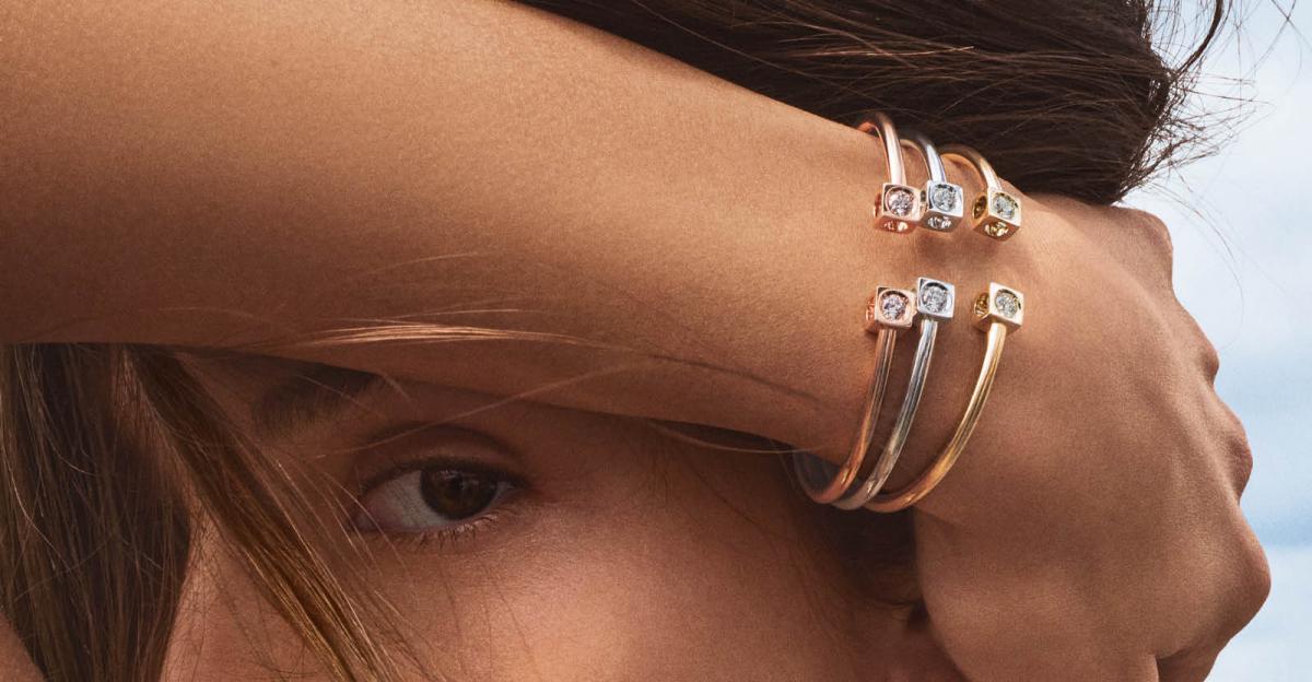 A minimalist interpretation of two essential geometric shapes, the round and the square, which gives Le Cube Diamant creations simplicity and elegance.